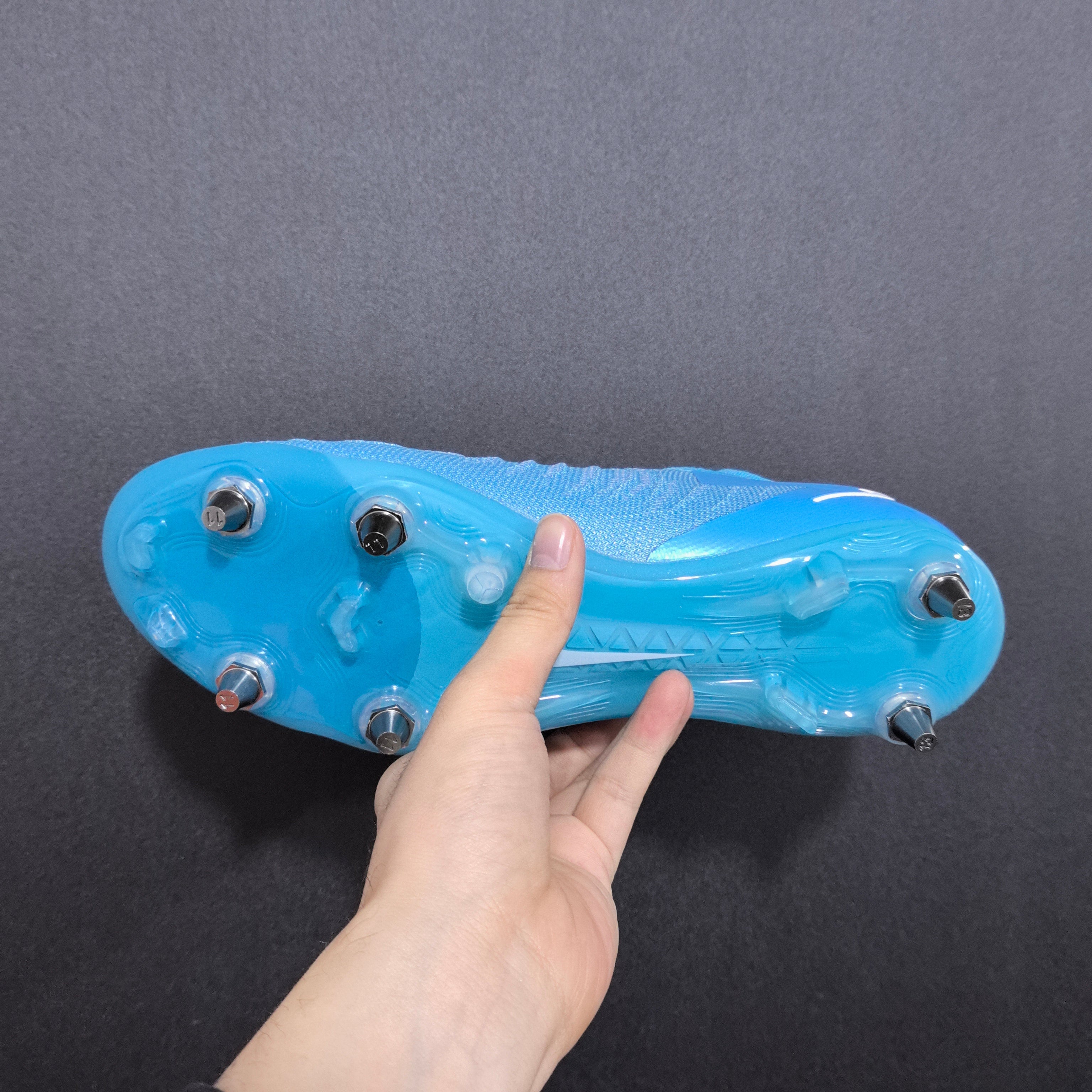 Com cravos metálicos removíveis, solado de tração agressiva e cabedal GripKnit de última geração, ela entrega controle impecável, toque colante e estabilidade total em campos úmidos ou encharcados.